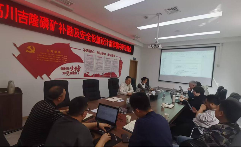 4月10日,公司組織召開高川吉隆磷礦補勘及安全設施設計報審稿內審專題會。(素材來源:業務部 楊東平)