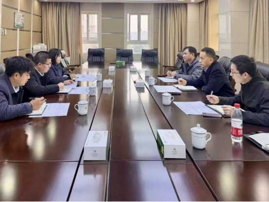 12月4日,集團黨支部書記、董事長袁波帶隊至農商行安州支行溝通項目流動資金貸款事宜。財務總監王銘揚陪同。(素材來源:財務融資中心 寧海丹)