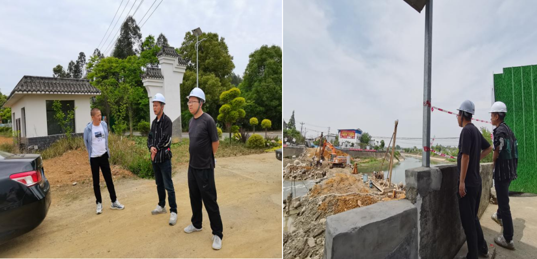 公司值班人員檢查村容村貌一期5標段聯豐村停車場建設情況及塔水鎮前鋒橋項目建設情況。